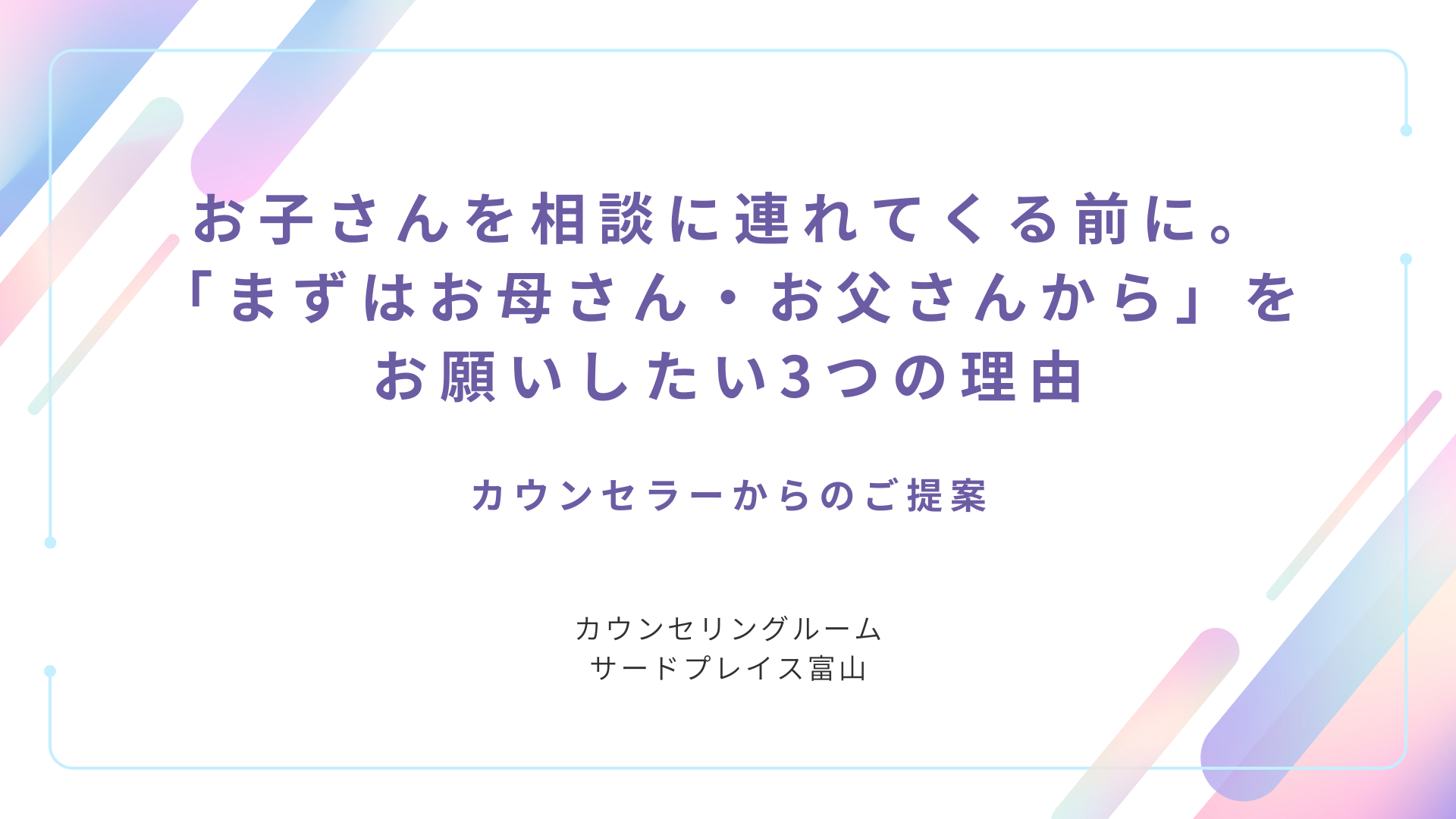 お子さんを相談に連れてくる前に。「まずはお母さん・お父さんから」をお願いしたい3つの理由|富山|子どもの相談